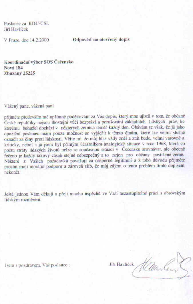 ODPOVĚDI POSLANCŮ, SENÁTORŮ A VLÁDY NA SOSCECENSKO