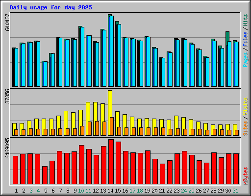 | Day | Hits | Files | Pages | Visits | Sites | KBytes | ||||||